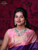 Absolutely Real Looking, Exclusive Victorian Russian Emerald Uncut Polki Necklace / Choker  in 24ct Gold micron plated Hallmark Pure Silver 92.5 studded with Semiprecious Uncut Polkis, and Semi Precious Russian Emerald gemstones paired with a Beautiful Statement Victorian Earrings.