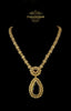 24ct Gold-Plated Hallmark Pure Silver (92.5) Long Necklace, Adorned with Semiprecious Uncut Polkis & Garnets, paired with matching earrings.