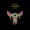 24ct Gold Micron plated Real Tourmaline Choker handcrafted in Hallmark Pure Silver 92.5 with Semiprecious Uncut Polkis and emerald paired Beautiful Earrings.